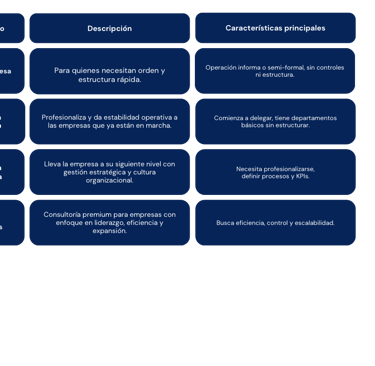 La consultoría es para ti. No importa el tamaño de tu empresa, siempre hay una manera de crecer con organización y estrategia.